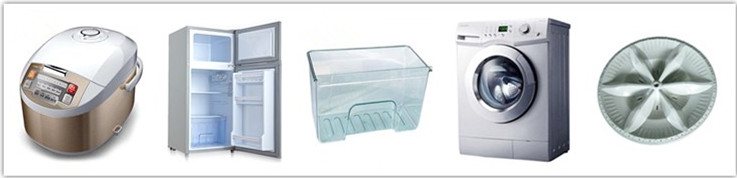 目前,礦物填充PP改性塑料在家電中的應用部位主要包括:波輪洗衣機和滾筒洗衣機的內桶、波輪和取衣口等部件;微波爐的密封條、揚聲器喇叭口、喇叭支架;冰箱的擱物架;電飯煲的外殼和底座等。